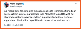 ixigo effected its biggest pivot in a remarkable timeframe of just four months. Their ability to constantly adapt and evolve to better serve their customers has today made them India's second-largest OTA platform.