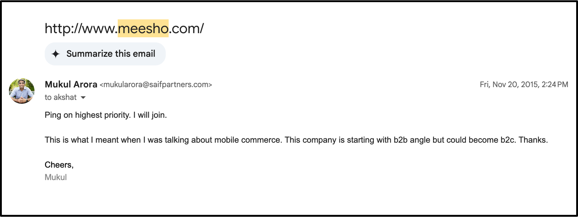 In 2015 - pre-Jio and pre-India’s e-commerce explosion - I stumbled upon a website called Meesho and emailed my colleague to reach out to them. That email led to a meeting with Vidit and Sanjeev soon after. But it took another 18 months - two pivots and many conversations - before we finally became partners.